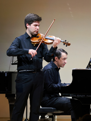 Milan Al-Ashhab (Violine), Adam Skoumal (Klavier). Werke von W. A. Mozart, B. Martin?, A. Skoumal, H. W. Ernst, M. Ravel, C. Debussy, F. Waxmann. www.khalbacht.com